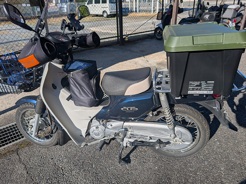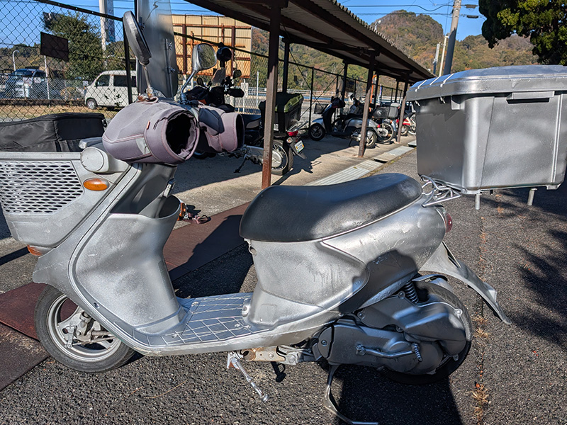 荷物が積めるバスケット付き原付バイク。